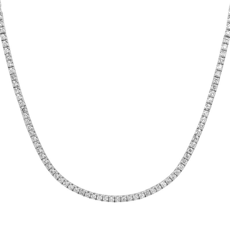 Gargantilla tipo riviere de garras en oro blanco de 18 quilates con diamantes en talla brillante (5.41 ct).