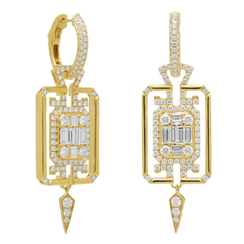 Pendientes en oro amarillo de 18 quilates con diamantes en talla brillante y baguette (3.30 ct).