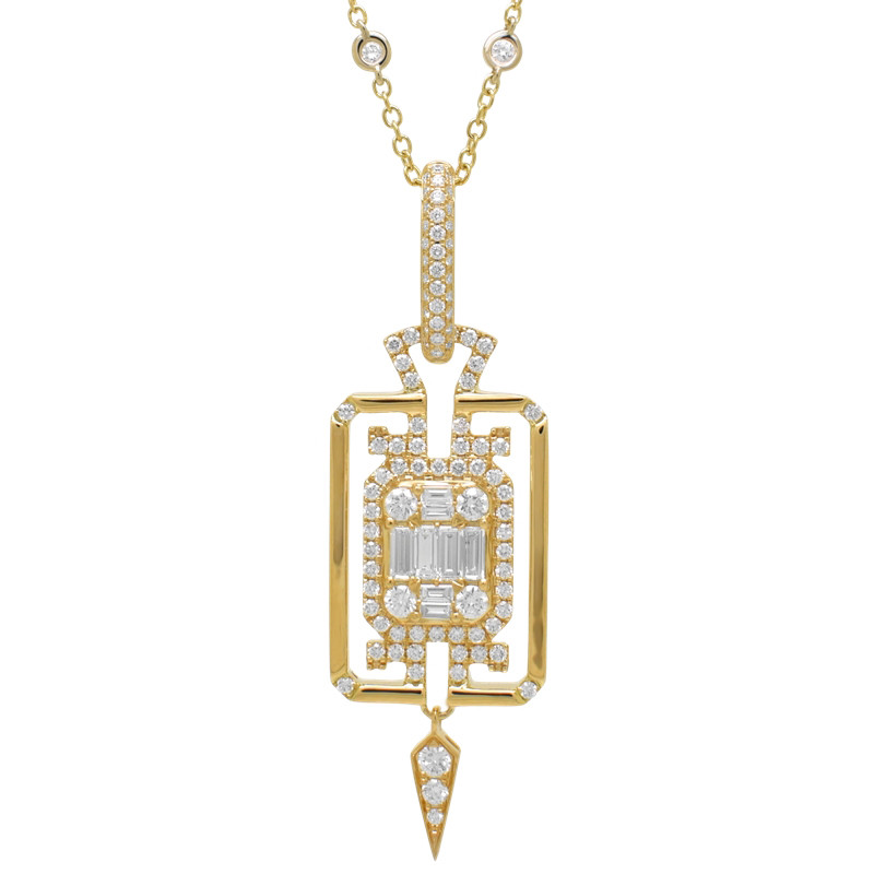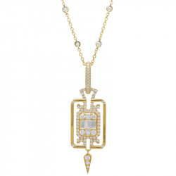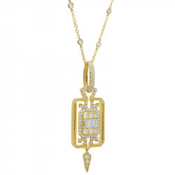 Colgante en oro amarillo de 18 quilates con diamantes en talla brillante y baguette (1.52 ct) y cadena de 42cm con 12 diamantes en talla brillante (0.25 ct).