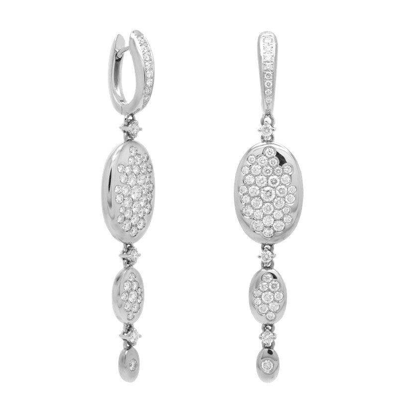 Pendientes largos en oro blanco de 18 quilates con diamantes en talla brillante (2.76 ct).