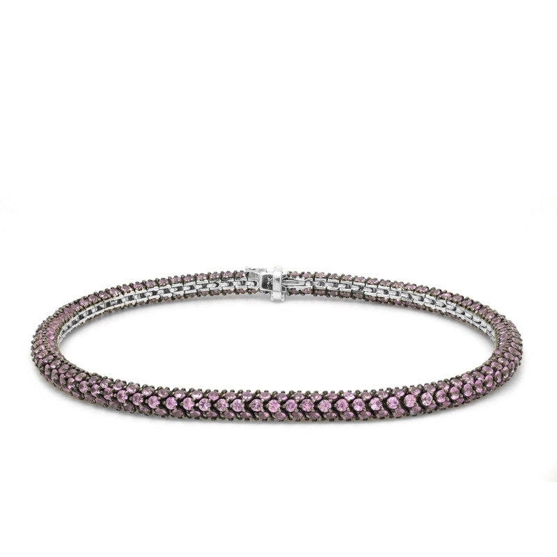 Pulsera en oro blanco de 18 quilates con acabado negro y zafiros rosas (8.19 ct).
