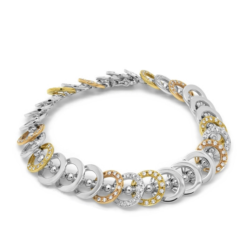 Pulsera con donuts en oro blanco, rosa y amarillo de 18 quilates y diamantes en talla brillante (1.30 ct).