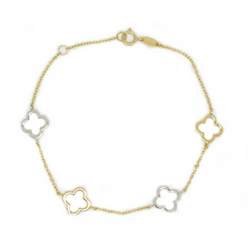 Pulsera en oro amarillo y blanco de 18 quilates con motivo flor.
