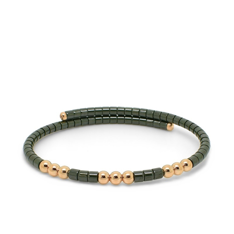 Pulsera de cerámica verde brillo y motivos de bolas en oro rosa de 18 quilates.