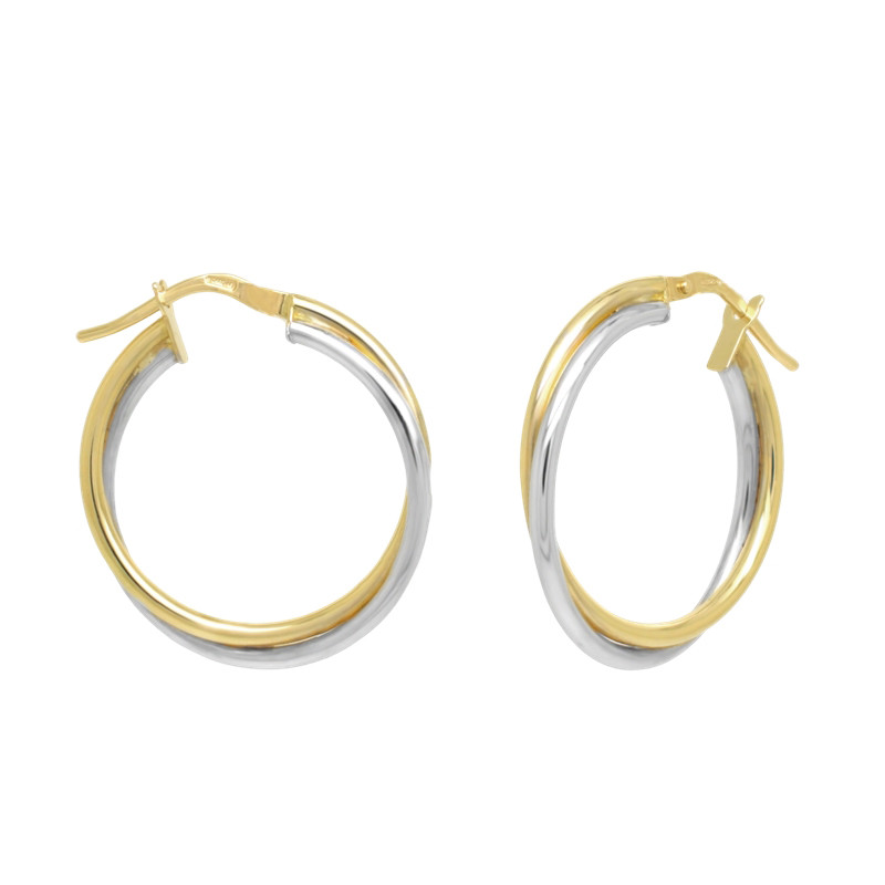 Pendientes tipo aro doble liso en oro blanco y amarillo de 18 quilates.