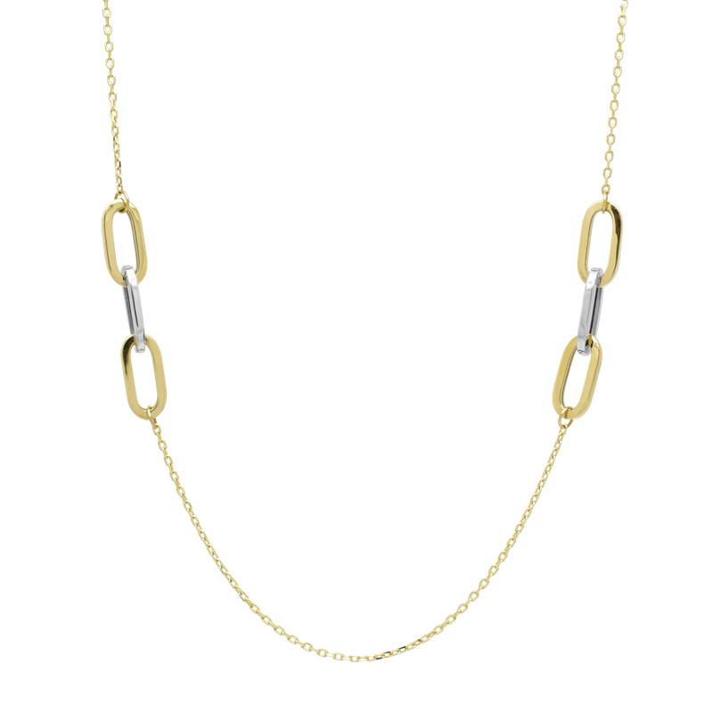 Gargantilla con cadena y anillas en oro amarillo y blanco de 18 quilates.