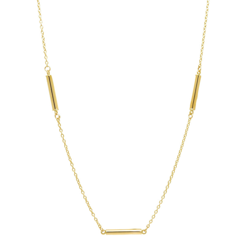 Gargantilla con cadena y 5 motivos tipo tubo en oro amarillo de 18 quilates.