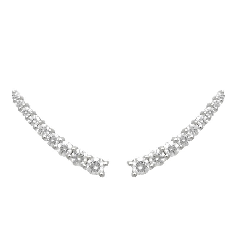 Pendientes tipo trepador en oro blanco de 18 quilates con diamantes en disminución de talla brillante (0.46 ct) y cierre de presión.