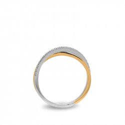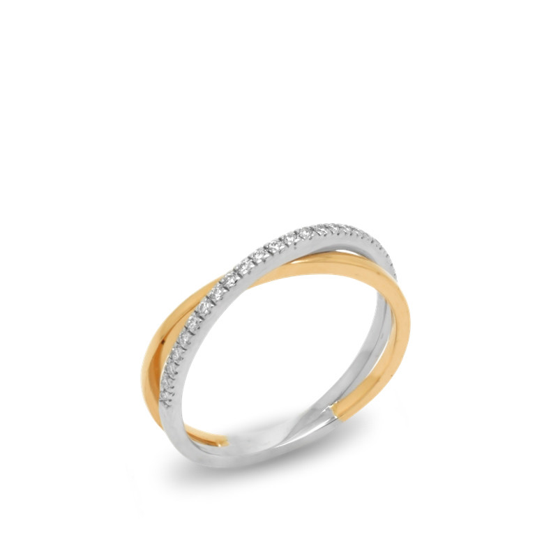 Anillo cruzado en oro blanco y rosa de 18 quilates con diamantes en talla brillante (0.11 ct).