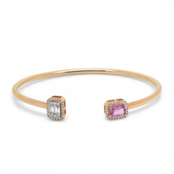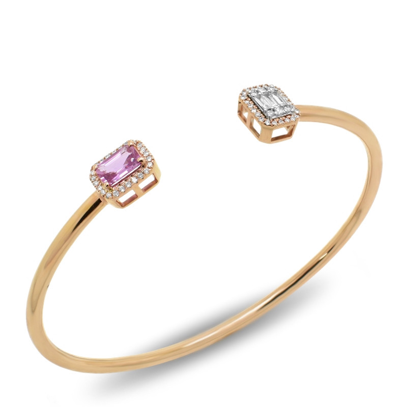 Pulsera en oro rosa de 18 quilates, diamantes en talla brillante, baguette y princesa (0.29 ct) y zafiro rosa (0.53 ct).