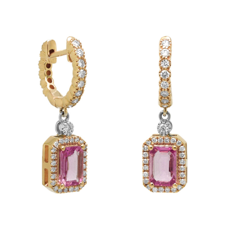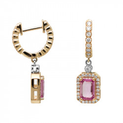 Pendientes en oro rosa de 18 quilates, diamantes en talla brillante (0.41 ct) y zafiro rosa (1.06 ct).