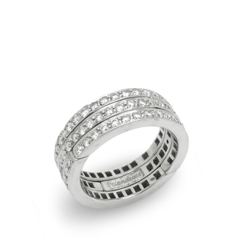 Anillo triple articulado en oro blanco de 18 quilates y diamantes en talla brillante (1.93 ct).