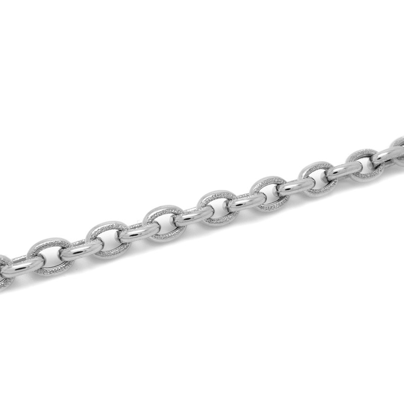 Pulsera de cadena de eslabones en oro blanco de 18 quilates. Tiene un largo de 20.5 cm.