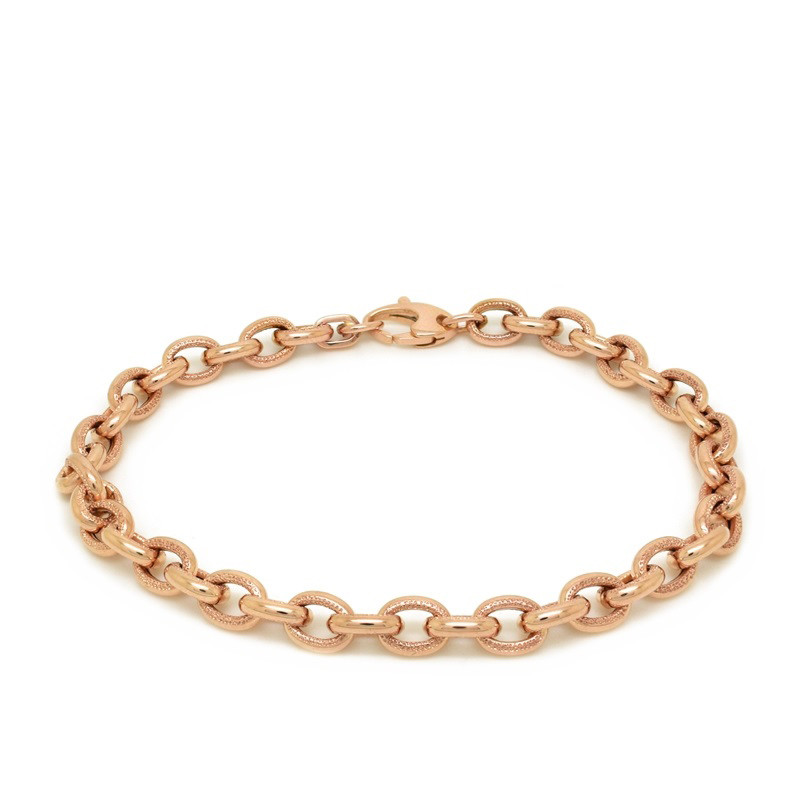 Pulsera de cadena de eslabones en oro rosa de 18 quilates. Tiene un largo de 20.5 cm.