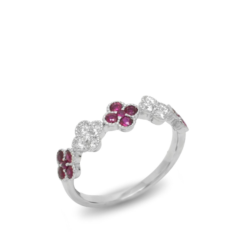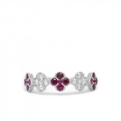 Anillo en oro blanco de 18 quilates, diamantes en talla brillante (0.23 ct) y rubíes (0.51 ct).