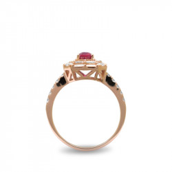 Anillo en oro rosa de 18 quilates, diamantes en talla brillante (0.36 ct), diamantes en talla baguette (0.73 ct) y rubí (0.98 ct).