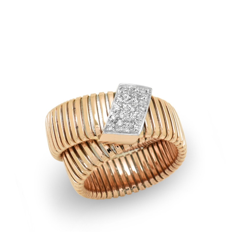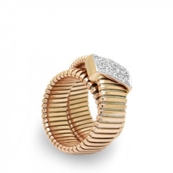 Anillo tubogas en oro rosa de 18 quilates y motivo de diamantes en talla brillante (0.14 ct).