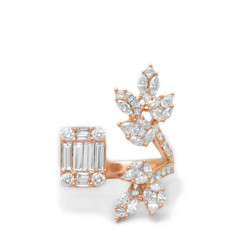 Anillo abierto en oro rosa de 18 quilates con diamantes en talla brillante, princesa, baguette, marquise y pera (2.20 ct).