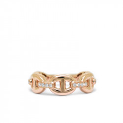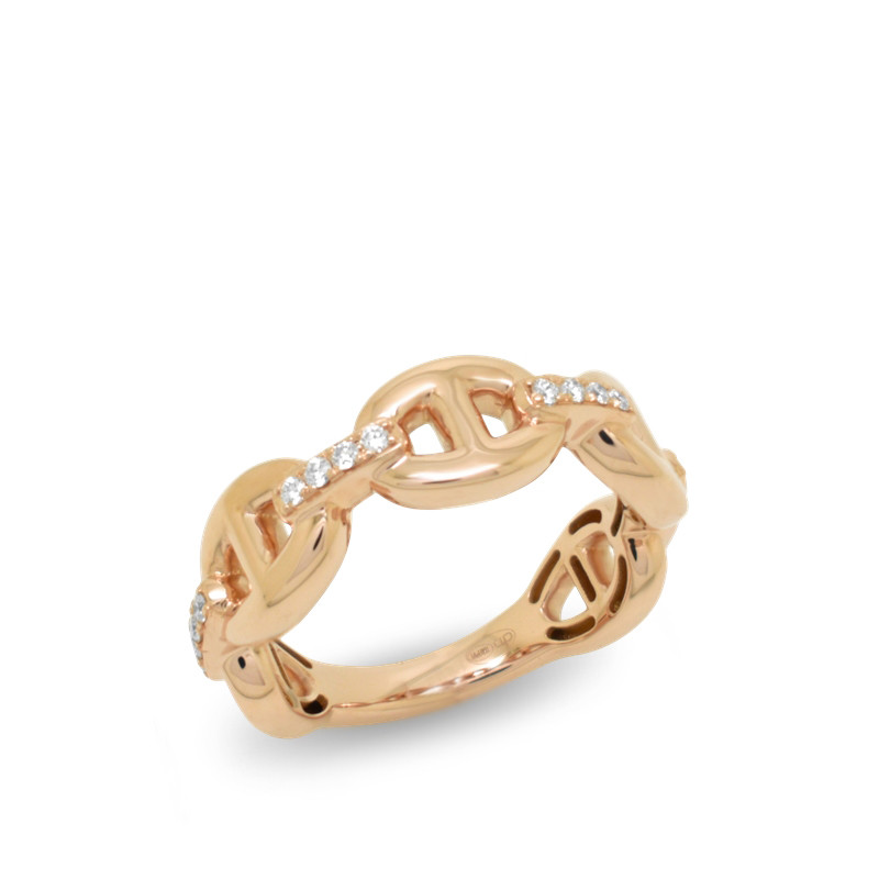 Anillo tipo cadena calabrote en oro rosa de 18 quilates con diamantes en talla brillante (0.14 ct).