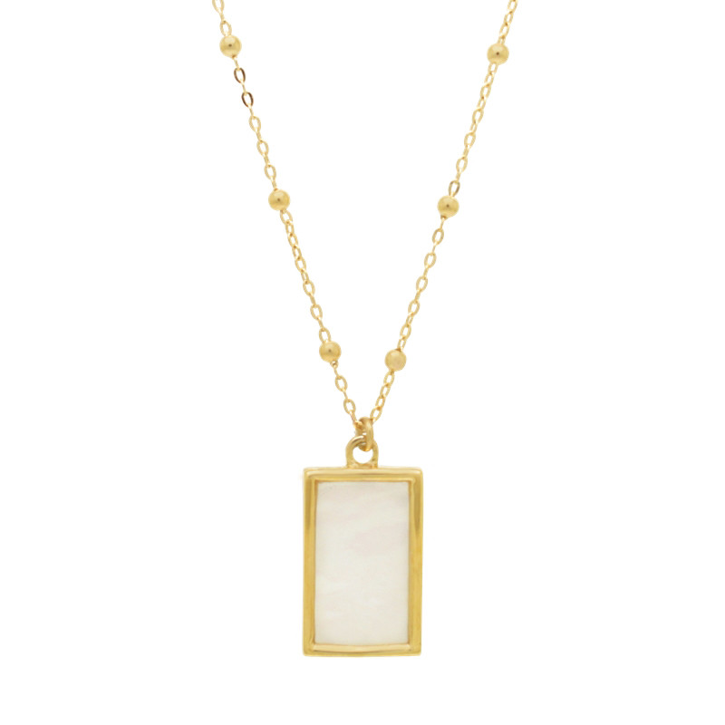 Colgante en oro amarillo de 18 quilates y nácar rectangular con cadena de bolas de 42 cm.