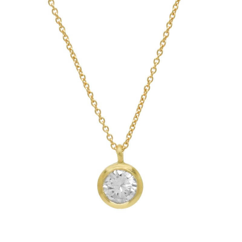 Colgante tipo dormilona en oro amarillo de 18 quilates y un diamante talla brillante (0.25 ct), con cadena de 42 cm.
