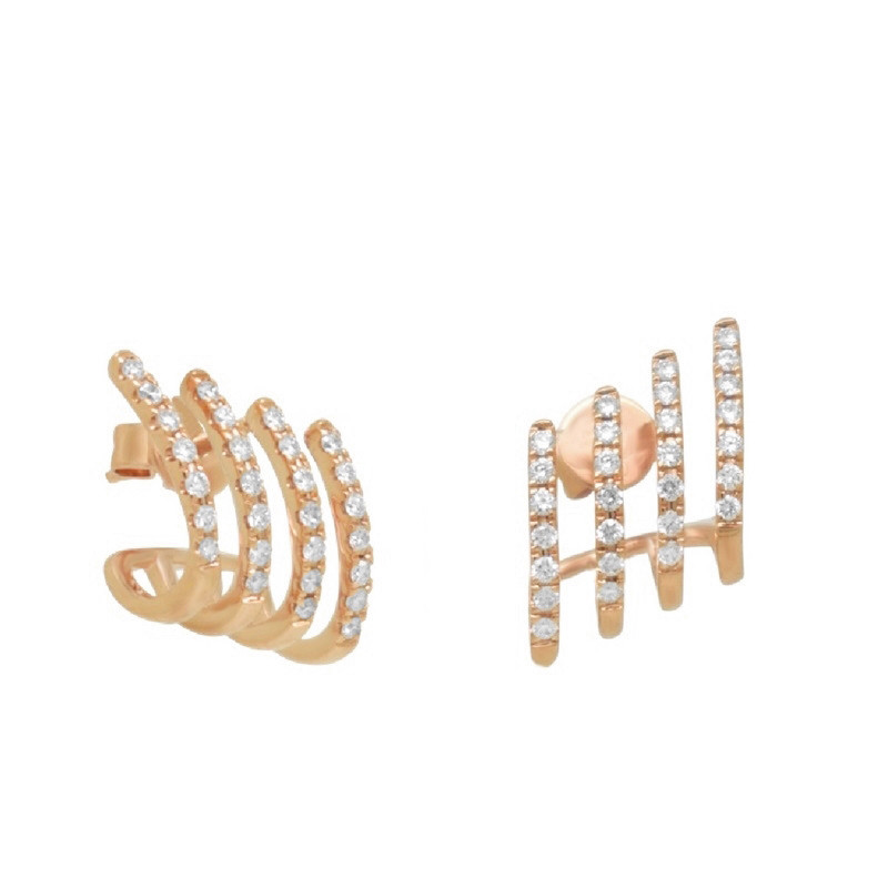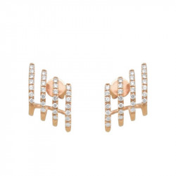 Pendientes tipo trepador en oro rosa de 18 quilates y cuatro aros de diamantes en talla brillante (0.35 ct).