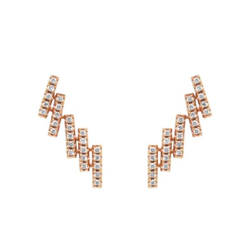 Pendientes tipo trepador en oro rosa de 18 quilates y cinco filas de diamantes en talla brillante (0.15 ct).