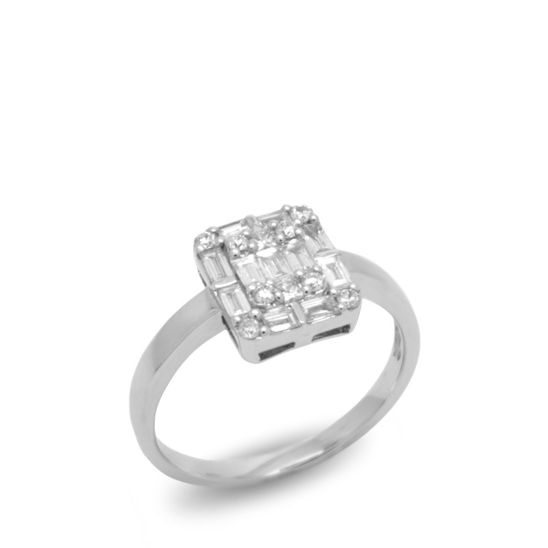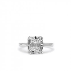 Anillo en oro blanco de 18 quilates con diamantes en talla brillante y baguette (0.73 ct).