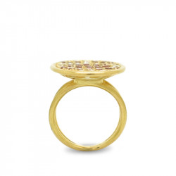 Anillo en oro amarillo de 18 quilates con acabado brillo/mate y pavé con diamantes en talla brillante y cuarzo citrino (2.25 ct).
