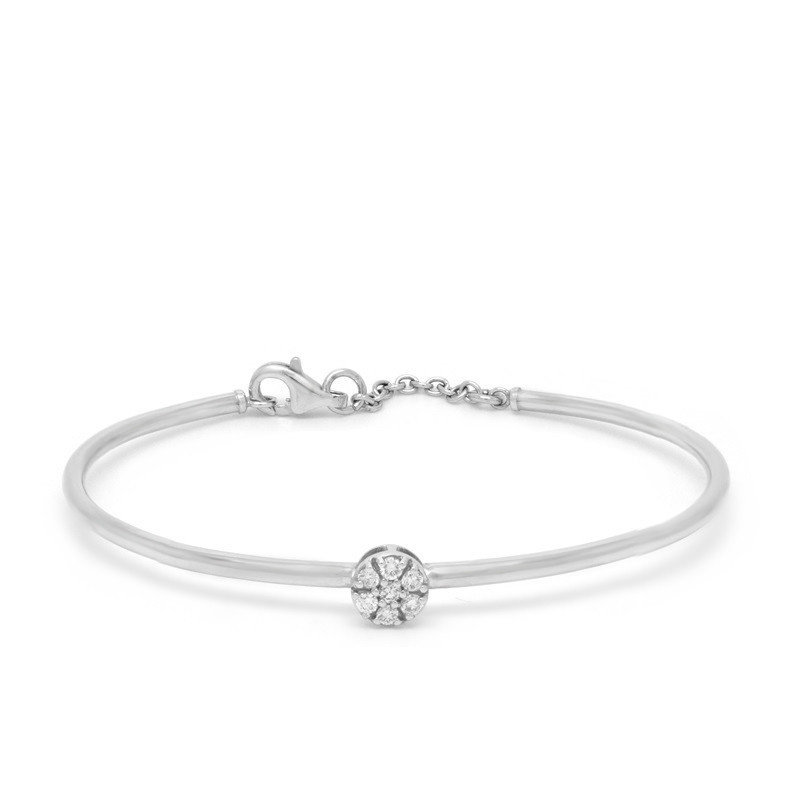 Pulsera de tubo rendondo rígido en oro blanco de 18 quilates con motivo de roseta de diamantes en talla brillante (0.28 ct).