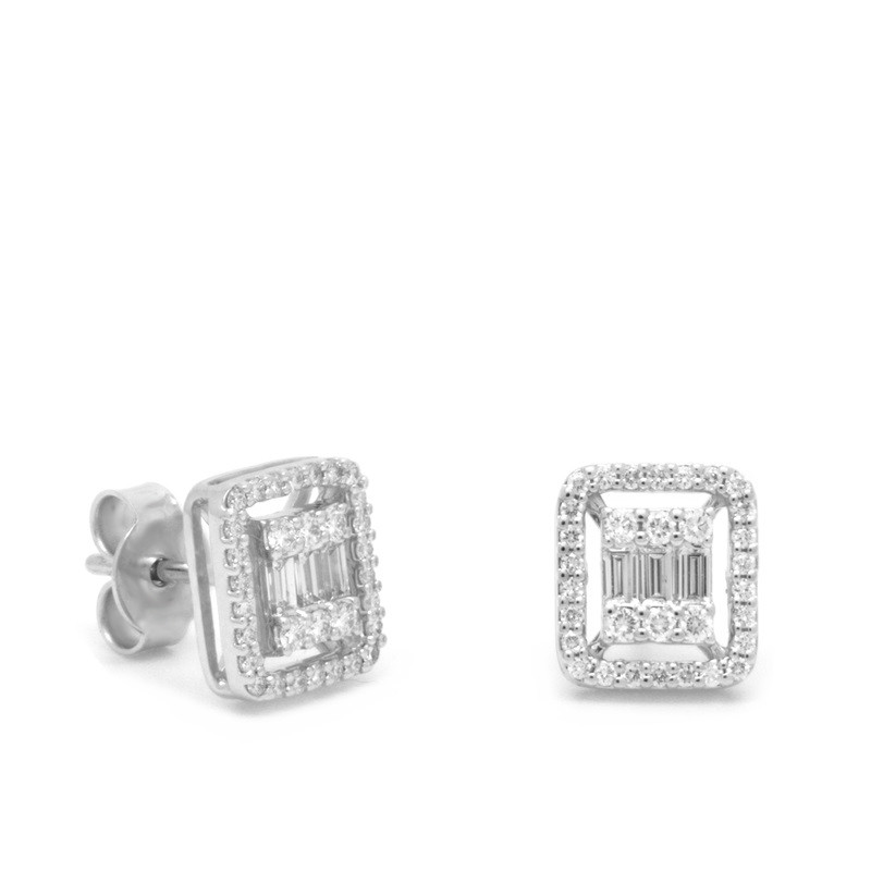 Pendientes en oro blanco de 18 quilates y diamantes en talla brillante y baguette (0.50 ct).