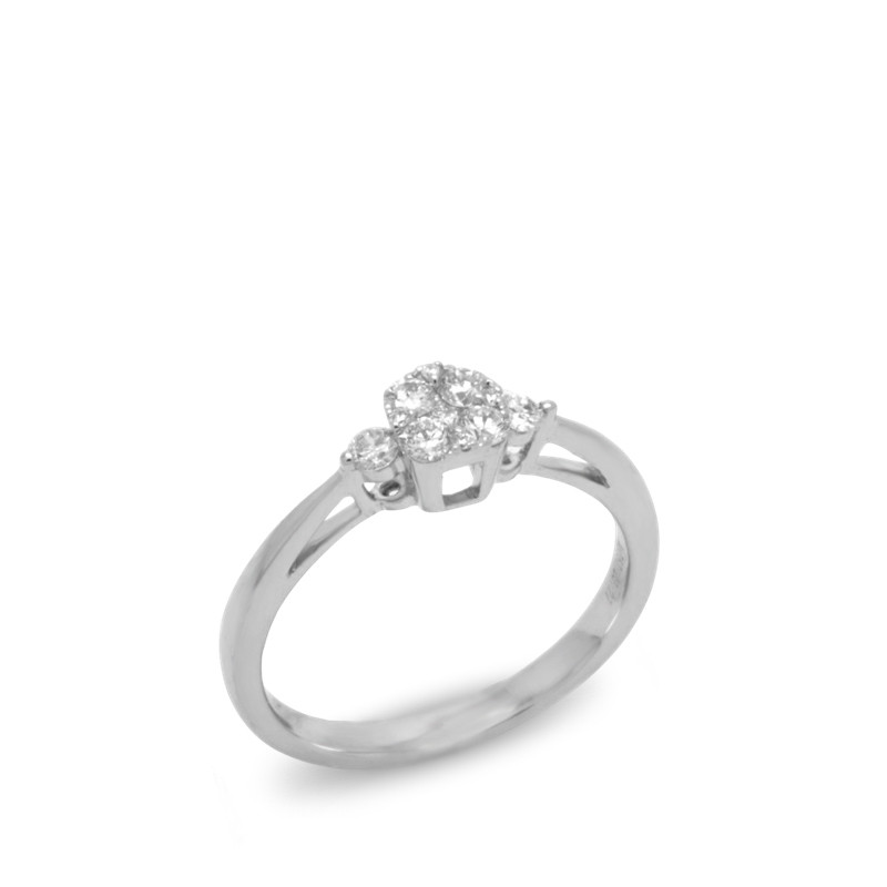 Anillo tipo tresillo en oro blanco de 18 quilates con diamantes en talla brillante (0.25 ct).