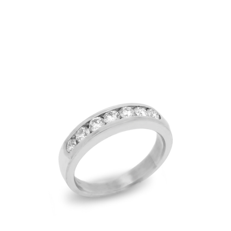 Anillo tipo media alianza en oro blanco de 18 quilates con diamantes talla brillante en carril (0.61 ct).