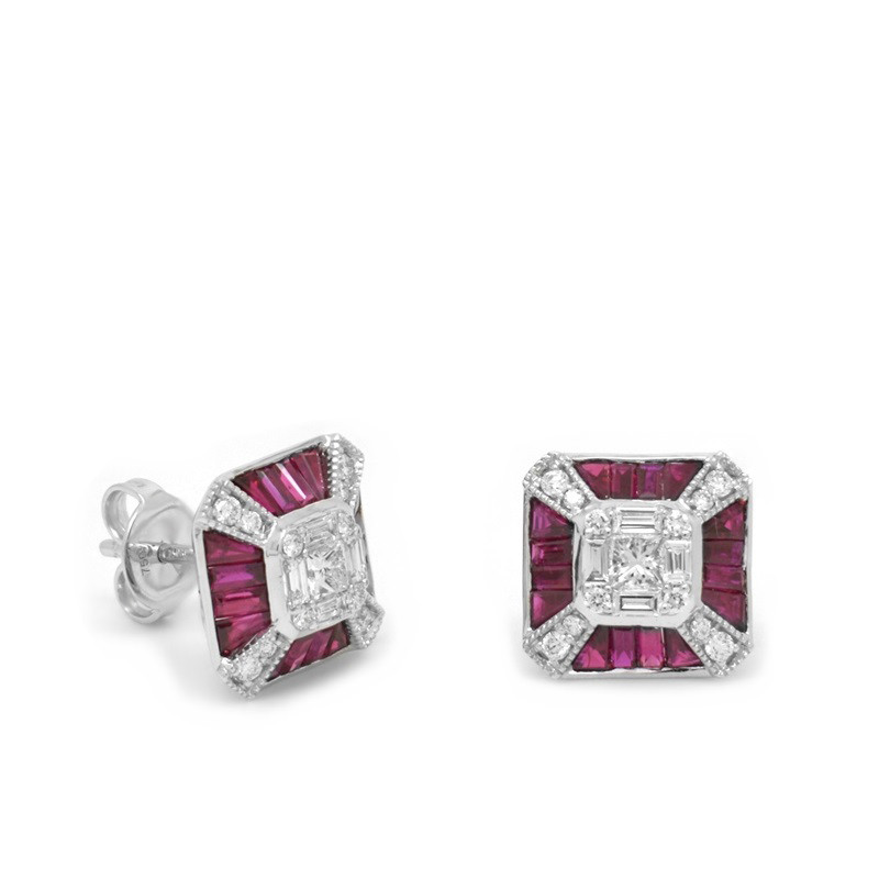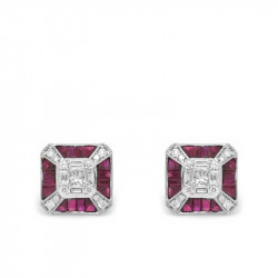 Pendientes en oro blanco de 18 quilates, diamantes en talla brillante (0.63 ct) y rubíes (2.17 ct).