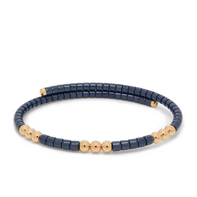 Pulsera de cerámica azul brillo y motivos de bolas en oro rosa de 18 quilates.