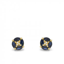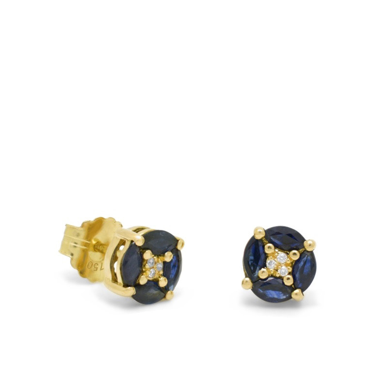Pendientes en oro amarillo de 18 quilates, zafiros en talla marquise y diamantes en talla brillante.
