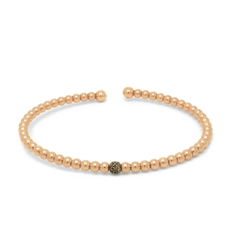 Pulsera de bolas en oro rosa de 18 quilates con alma de titanio y un motivo con diamantes marrones (0.12 ct).
