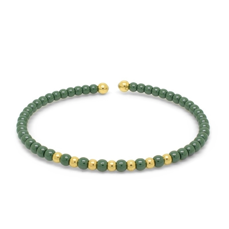 Pulsera con alma de titanio, bolas en oro amarillo de 18 quilates y cerámica verde.