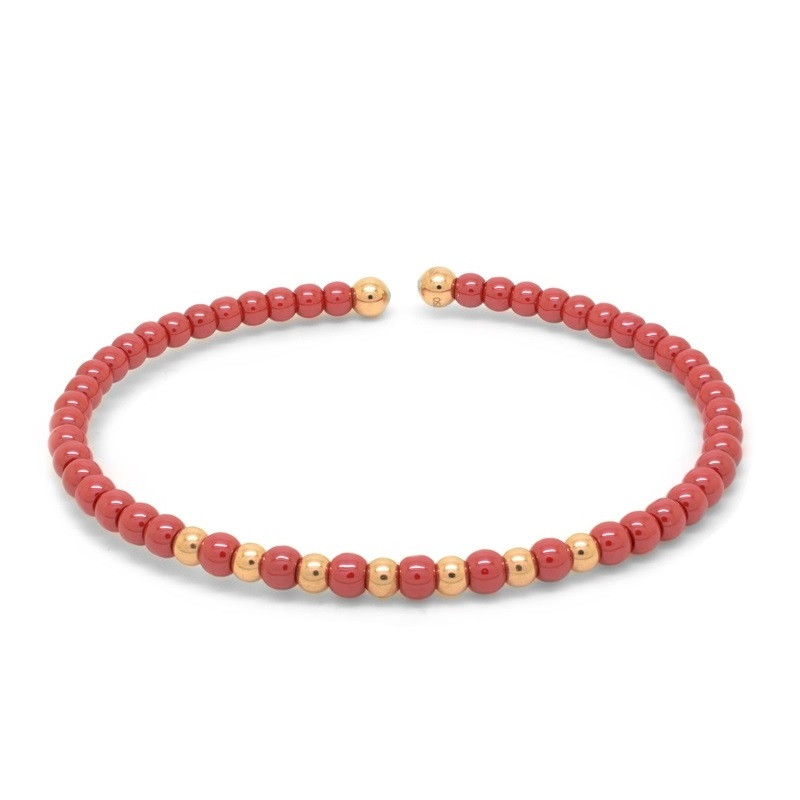 Pulsera con alma de titanio, bolas en oro rosa de 18 quilates y cerámica roja.