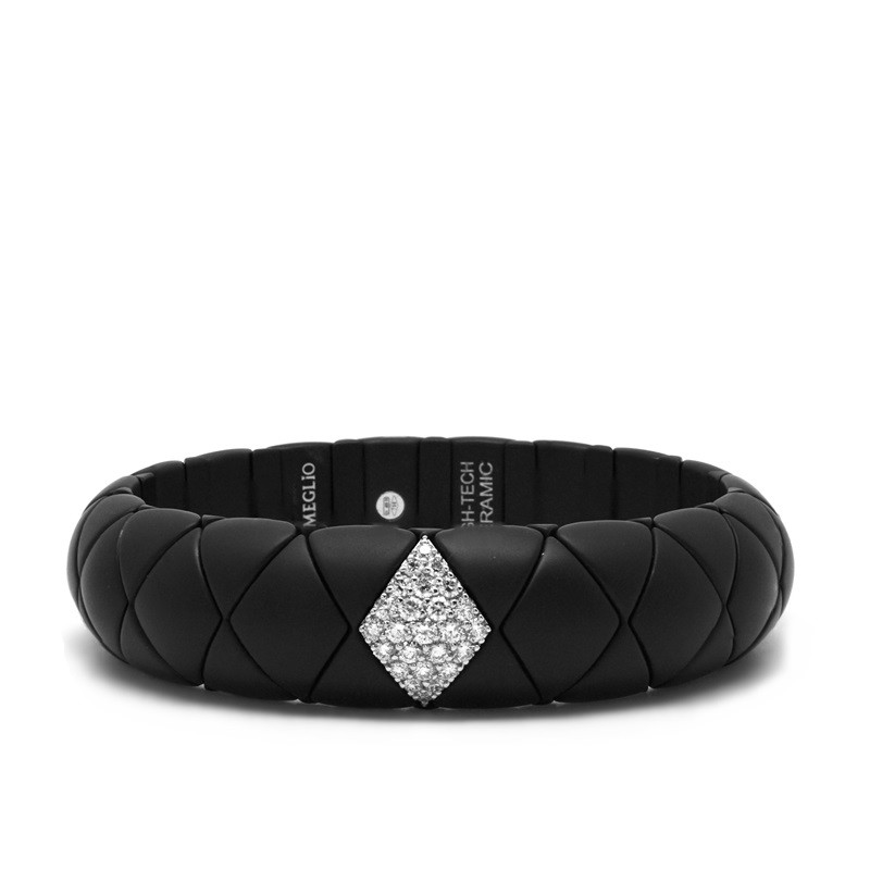 Pulsera elástica de cerámica negra con un motivo en forma de rombo de oro blanco de 18 quilates y diamantes en talla brillante (0.62 ct)