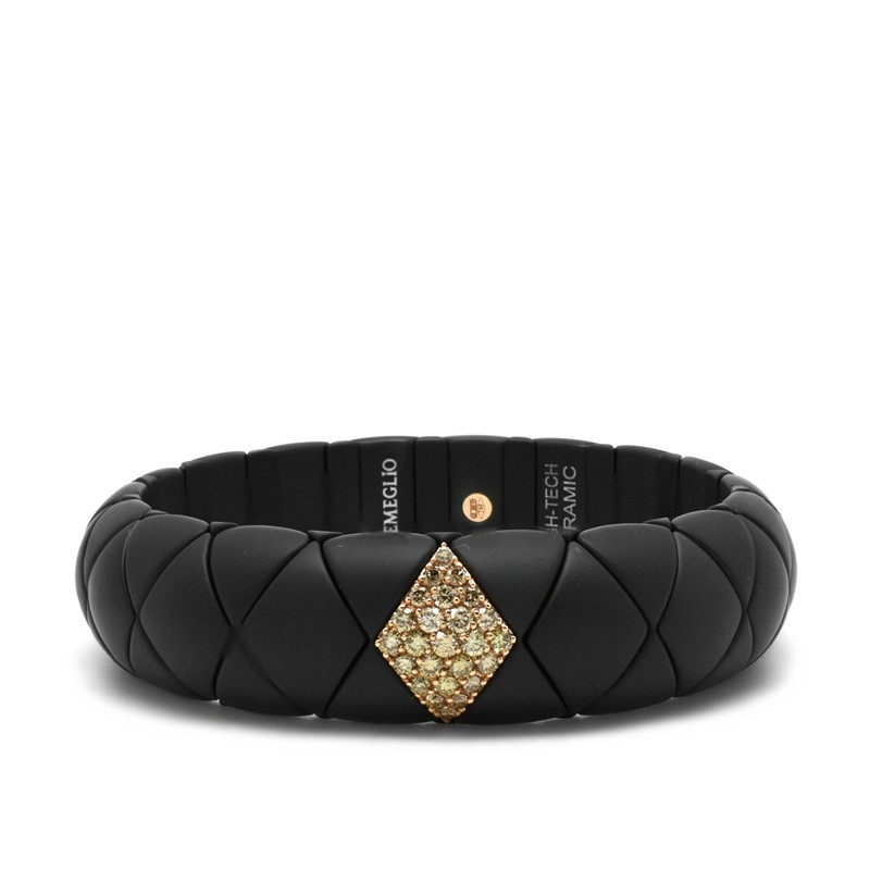 Pulsera elástica de cerámica negra con un motivo en forma de rombo de oro rosa de 18 quilates y diamantes marrones (0.65 ct)