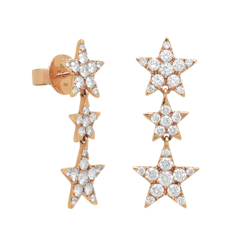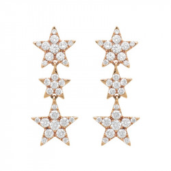 Pendientes largos en oro rosa de 18 quilates y 3 motivos en forma de estrella con diamantes en talla brillante (2.13 ct).