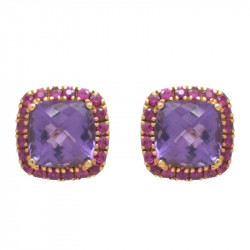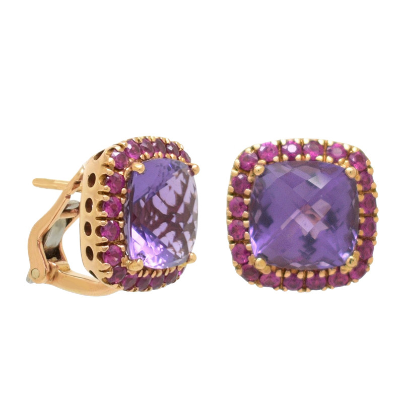 Pendientes en oro rosa de 18 quilates, amatistas y rubíes.