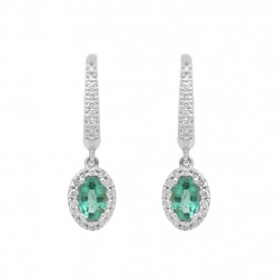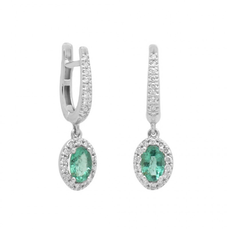 Pendientes en oro blanco de 18 quilates, diamantes en talla brillante (0.35 ct) y esmeralda oval (0.88 ct).