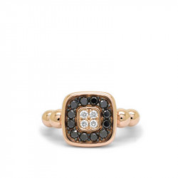 Anillo con brazo de bolas y motivo cuadrado en oro rosa de 18 quilates, diamantes en talla brillante (0.11 ct) y diamantes negros (0.58 ct).