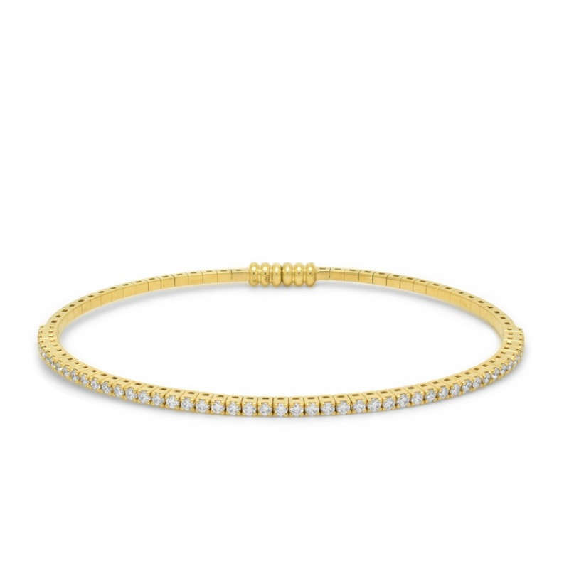 Pulsera con cierre de imán, tipo riviere semirígida en oro amarillo de 18 quilates con diamantes en talla brillante (0.68 ct).