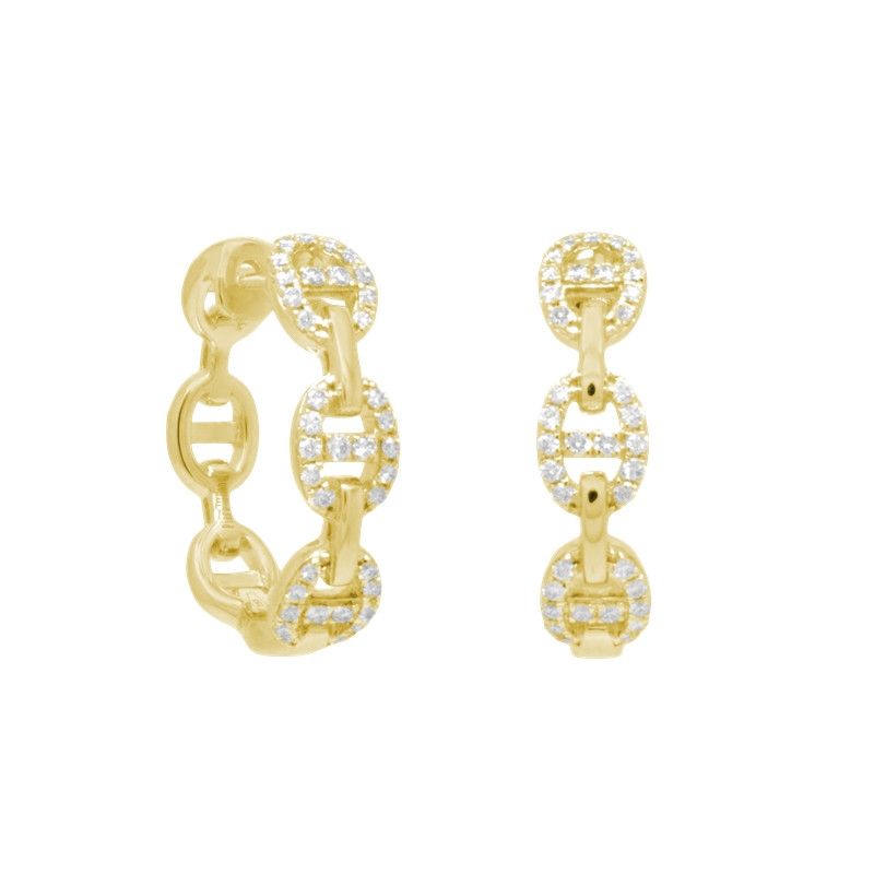 Pendientes tipo aro con motivos de calabrote en oro amarillo de 18 quilates y diamantes en talla brillante (0.26 ct).
