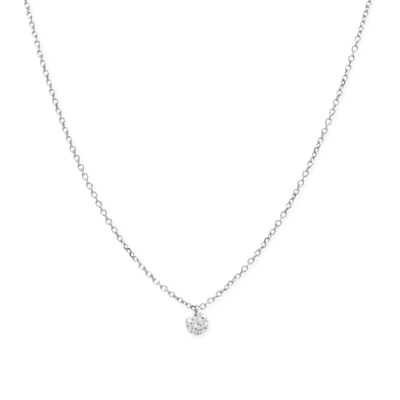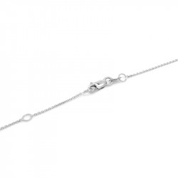 Gargantilla en oro blanco de 18 quilates y un diamante perforado en talla brillante de 0.10 ct. Tiene un largo de 42 cm con anilla a 40 cm.