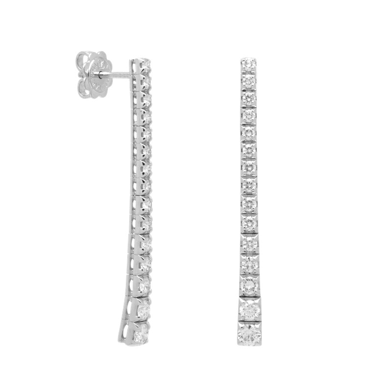 Pendientes tipo riviere en oro blanco de 18 quilates y diamantes en talla brillante (1.25 ct).