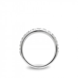 Anillo tipo media alianza de la firma Mirco Visconti. Realizado en oro blanco de 18 quilates con diamantes en talla brillante (0.63 ct).